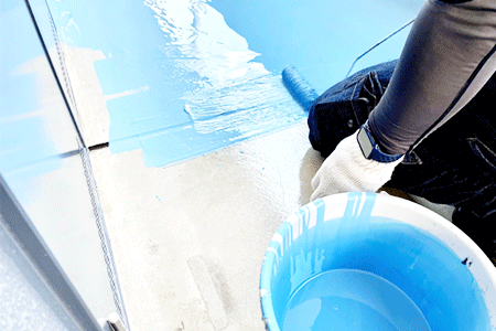防水性の高い塗料を使い、厚い層になるように塗装していきます。