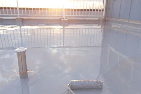 防水層は紫外線に弱いため、塗装後は上からトップコートで保護します。